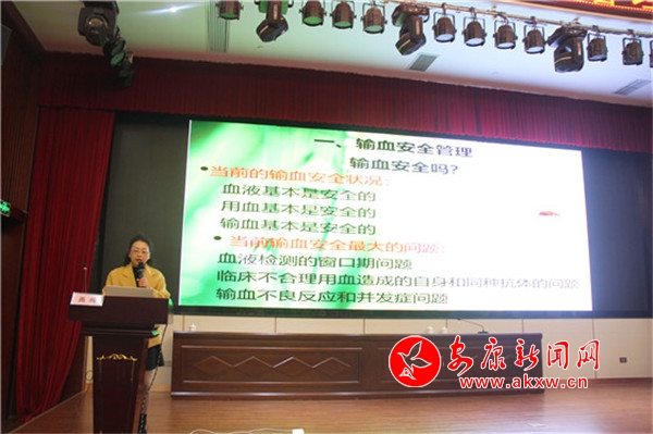 本次培訓(xùn)特別邀請了西安交通大學(xué)第一附屬醫(yī)院輸血科主任王寶燕教授,她結(jié)合自身多年工作經(jīng)驗,就《臨床輸血流程管理和臨床案例分析》進(jìn)行了深入細(xì)致的講解。安康市中心醫(yī)院輸血科禹梅老師從血液管理、成分血的輸注、評估等方面做了《臨床輸血實踐與控制》的精彩闡述。安康市中心血站副站長李宏就近年來全市臨床輸血質(zhì)量管理專項督查中存在的問題進(jìn)行了一一剖析,通報了各臨床用血單位無償獻(xiàn)血募集指標(biāo)完成的情況。
