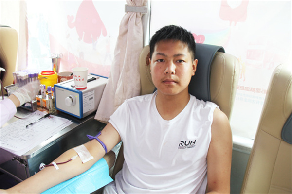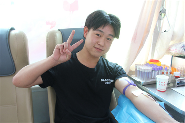 金濤濤是汽修專業(yè)四年級(jí)的學(xué)生,當(dāng)天他第一個(gè)走上獻(xiàn)血車,已經(jīng)第四次獻(xiàn)血的他顯得非常輕松。他告訴我們,自己初次獻(xiàn)血是十八歲,之后每年時(shí)間到了都主動(dòng)來(lái)獻(xiàn)血,上次他還拉上了爸媽,一家三口一起獻(xiàn)了血。金濤濤覺(jué)得獻(xiàn)血特別有意義,對(duì)自己的身體有好處,還能救人,每次收到血站發(fā)來(lái)的用血短信心里都超級(jí)自豪,就想多喊幾個(gè)人一起來(lái),他說(shuō)今后一定爭(zhēng)取把全宿舍的人都動(dòng)員起來(lái),多獻(xiàn)血多出力多助人!