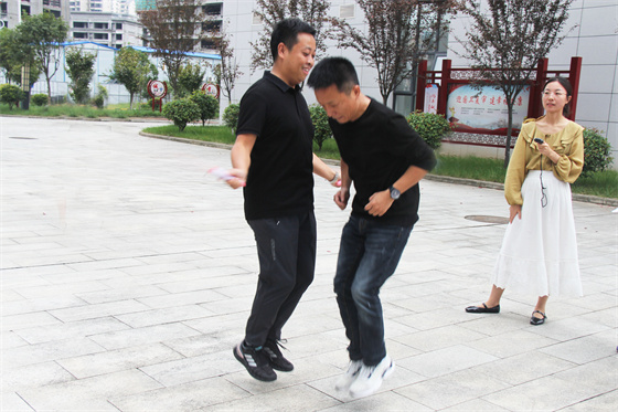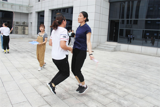 當(dāng)然比賽中還有許多“小插曲”,有的選手鞋帶松了,有的選手繩子扭了,有的選手眼鏡掉了,有的選手被大繩打到疼得哇哇叫,但正是因?yàn)橛辛诉@些小插曲,才讓參與者的笑聲更響,讓這場比賽變得更生動有趣,也讓“快樂工作、幸福生活”這句話有了最真實(shí)的體現(xiàn)。