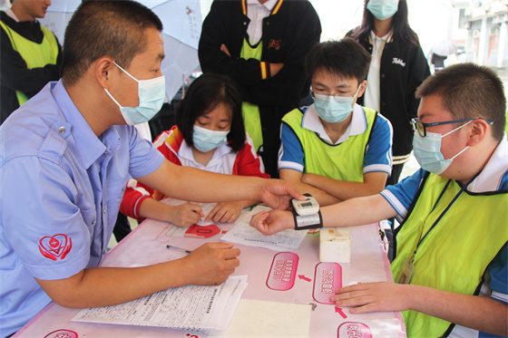 前來獻(xiàn)血的學(xué)生里有不少人還不滿十八歲,因?yàn)椴粔蚍ǘǐI(xiàn)血年齡,大家都帶著些遺憾不肯離開,血站工作人員見狀把大家組織在一起,給他們發(fā)放了無償獻(xiàn)血宣傳冊,鼓勵他們先了解相關(guān)知識,等年齡夠了再來?!爸灰袗坌模裁磿r(shí)候來都不遲!”工作人員笑瞇瞇地鼓勵到。