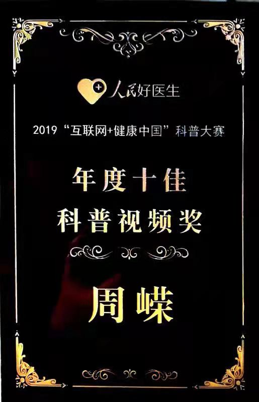 2021年 獲醫(yī)生云獎;獲“科普紅人直播賽十強”稱號