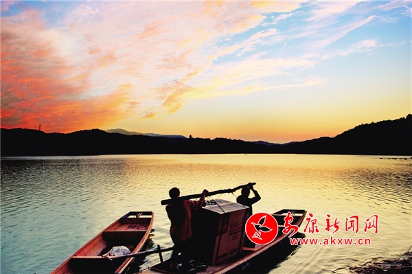 景隨人動(dòng),瀛湖最美的季節(jié)還不在春天。深秋時(shí)節(jié),電站大壩下閘蓄水,水位上升,湖面開(kāi)闊,山啊、樹(shù)啊宛立在水中,道不出的萬(wàn)種風(fēng)情。水色如煙,光影朦朧,島嶼羅列,山水相依相親,如夢(mèng)似幻。此時(shí)大自然早已少了春的細(xì)賦描繪,已是濃墨重潑的巨幅寫(xiě)意,山上樹(shù)葉五彩斑斕,深紅、橙紅、橙黃、明黃、碧綠、墨綠,層層疊疊、深淺不一,把大山裝扮得分外妖嬈,哪里還有“枯藤老樹(shù)昏鴉”的凄涼景象?