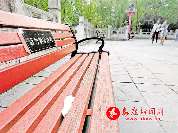 游人在景區(qū)長凳上丟下的垃圾