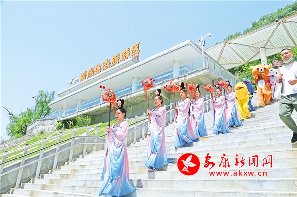 休閑勝地翠屏島,最大的亮點(diǎn)是玉清橋的彩虹瀑布,游客從橋下經(jīng)過,感受“瀛湖之水天上來”的曼妙,這也是瀛湖為游客送上的初夏第一絲清涼。橋頭幸福的天梯、鳥巢,成為排隊(duì)拍照的絕佳點(diǎn)位。運(yùn)動(dòng)場(chǎng)上,滾鐵環(huán)、射箭、投壺、打籃球,讓游客流連忘返。兒童樂園旁,微型爆米花機(jī)勾起了孩子們參與的興趣,彩繪激發(fā)了孩子們的繪畫熱情。瀛湖水上嘉年華,精彩刺激的水上項(xiàng)目帶給游客酣暢的體驗(yàn),游客紛紛直呼“過癮”!