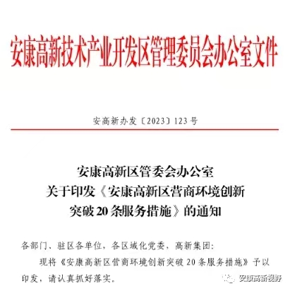 聚焦“三個(gè)年” | 安康高新區(qū)出臺(tái)營(yíng)商環(huán)境創(chuàng)新突破“二十條”服務(wù)措施