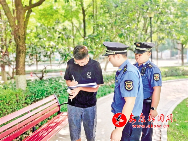 連日來,漢濱區(qū)、高新區(qū)城管部門在中心城區(qū)全域持續(xù)開展“文明有我 痰吐文雅”專項(xiàng)糾治執(zhí)法行動(dòng)。城管執(zhí)法人員依據(jù)規(guī)定,對(duì)“隨地吐痰”等不文明行為人,處以十元以上五十元以下的罰款,或以發(fā)朋友圈集贊的方式接受柔性執(zhí)法免于罰款。據(jù)統(tǒng)計(jì),截至9月6日,已開展現(xiàn)場處罰258人次,其中開具罰單62張。圖為隨地吐痰的市民正在接受行政處罰。屈明佳 攝