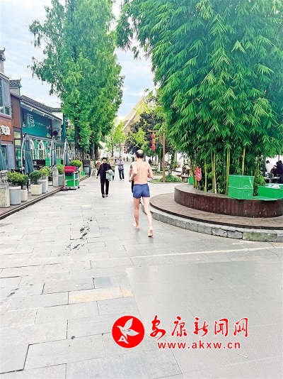 9月30日,一位市民著泳裝跑過龍舟文化園,違反文明游泳相關(guān)規(guī)定,成為文明安康不和諧的音符。