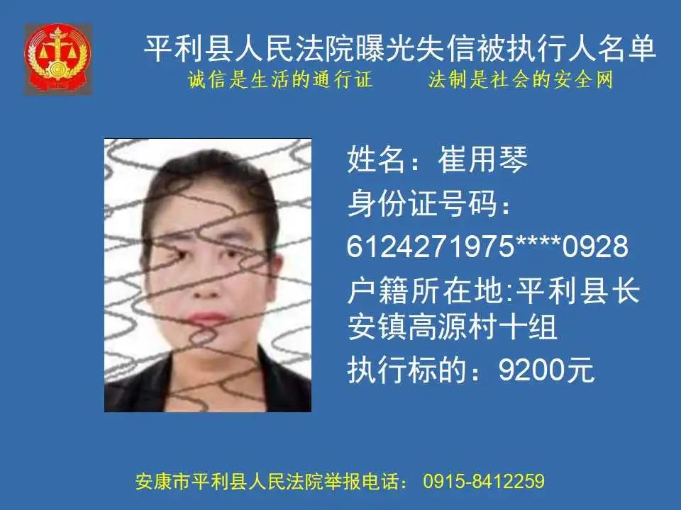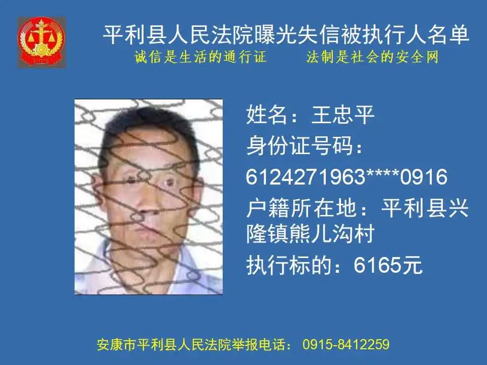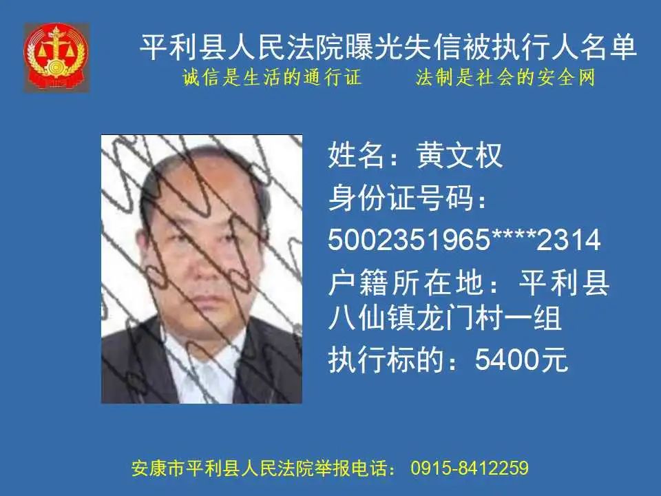 曝光失信 | 平利縣人民法院曝光失信被執(zhí)行人名單(2023年第四期)
