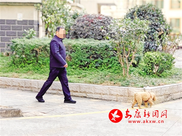 12月2日,有市民在某小區(qū)內(nèi)不牽繩遛狗。鄭時(shí)根 攝?