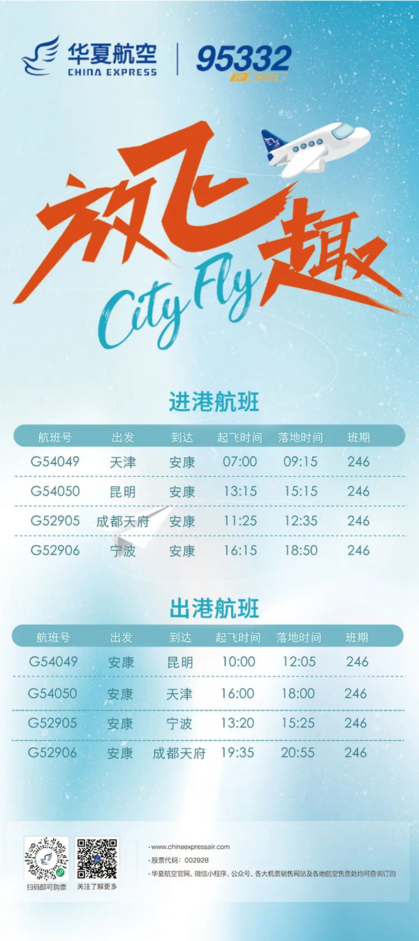12月26日起,安康機(jī)場(chǎng)新增至昆明天津航線(xiàn)