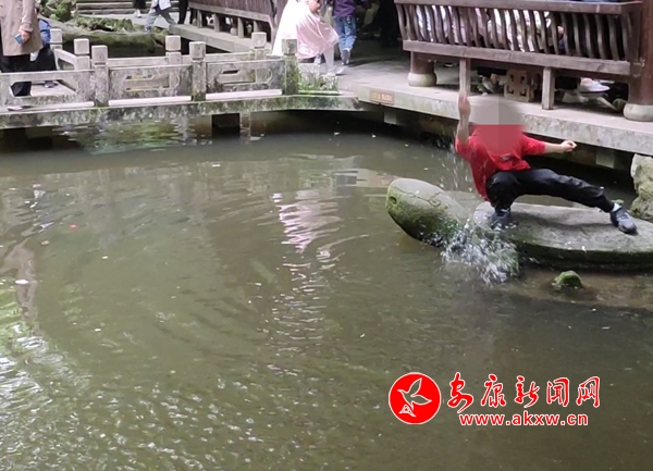 5月2日,香溪洞風景名勝區(qū)有游客違反景區(qū)安全規(guī)定,存在攀爬護欄,下池嬉水等不文明旅游行為。(實習記者 冉麗雯)