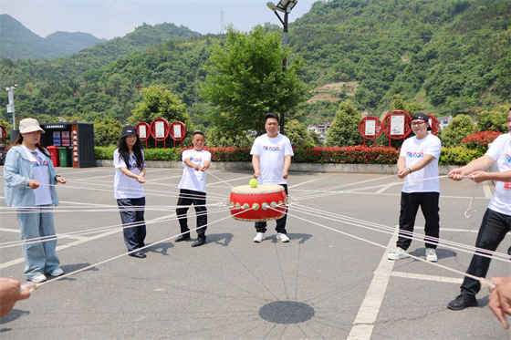 隨后,一眾獻血者乘著大巴迎著初夏的清風(fēng)來到了平利縣蔣家坪村。參觀結(jié)束后,獻血者們在專業(yè)教練的帶領(lǐng)下開展了素質(zhì)拓展訓(xùn)練,大家分別組隊,繪制了精美的團隊旗幟,喊出了響亮的團隊口號……指壓板接力、擊鼓顛球、獨木橋、一圈到底、一個個趣味游戲讓場上隊員激情滿滿、歡樂無比,大家在一輪又一輪的比拼中體會到了對抗的激烈,也感受到了團結(jié)的情誼,更展現(xiàn)了成分血固定獻血者們“勇往直前、持之以恒、永不服輸”的堅韌精神,正如大家多年來對安康無償獻血公益事業(yè)的堅守與支持。