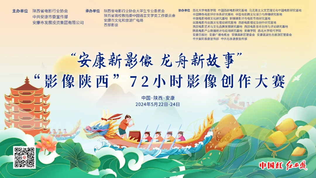 “安康新影像·龍舟新故事”“影像陜西”72小時(shí)影像創(chuàng)作大賽由陜西省電影行業(yè)協(xié)會(huì)、中共安康市委宣傳部、安康市發(fā)展投資集團(tuán)有限公司主辦,陜西省電影行業(yè)協(xié)會(huì)大學(xué)生專業(yè)委員會(huì)、陜西省高校教指委中國(guó)語言文學(xué)類工作委員會(huì)、安康市文化和旅游廣電局、西部影談承辦。通過主題限時(shí)拍攝、分享交流、展映評(píng)獎(jiǎng)等活動(dòng),匯集新興影視創(chuàng)作力量,以安康為創(chuàng)作空間,不限制創(chuàng)作題材風(fēng)格,鼓勵(lì)青年影人以年輕、多元的視角在72小時(shí)內(nèi)進(jìn)行短片創(chuàng)作,從節(jié)慶活動(dòng)、自然風(fēng)光、現(xiàn)代都市、人文生活、美食文化等角度,為安康文旅、龍舟文化提供影像表達(dá)的另一種可能。