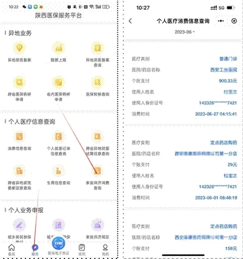 在“陜西醫(yī)?!盇PP“服務(wù)”界面,選擇家庭共濟(jì)消費查詢功能,授權(quán)者可查詢到使用者的家庭共濟(jì)消費情況。