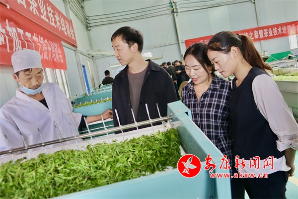 高翔“接單”后,一邊聯(lián)合鎮(zhèn)農(nóng)綜站同縣上的茶技中心對(duì)接,聘請(qǐng)專家到鎮(zhèn)指導(dǎo),一邊積極向鎮(zhèn)上的茶飲企業(yè)和茶農(nóng)宣傳,組織大家前來(lái)聽(tīng)講座、現(xiàn)場(chǎng)觀摩,有了高翔的“搭橋”,正陽(yáng)鎮(zhèn)茶技培訓(xùn)如期順利舉行,活動(dòng)當(dāng)天,茶葉加工場(chǎng)里熱鬧非凡,30余名茶企負(fù)責(zé)人和茶農(nóng)圍著專家現(xiàn)場(chǎng)提問(wèn),茶技中心專家親自示范、現(xiàn)場(chǎng)解答,大家聚精會(huì)神、虛心請(qǐng)教,通過(guò)系統(tǒng)的理論學(xué)習(xí)和動(dòng)手實(shí)踐,進(jìn)一步掌握和提升了茶園管護(hù)和茶葉加工的技術(shù)。