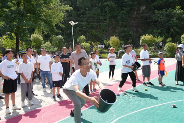 整場活動圍繞“感黨恩”“講孝義”“愛運(yùn)動”三個主題展開。在“感黨恩”活動中,干部群眾一起回顧黨的光輝歷史、歌頌黨的豐功偉績,為黨的103歲生日獻(xiàn)上誠摯祝福;在“講孝義”活動中,宣講員緊扣建設(shè)崇德向上幸福安康目標(biāo),用“小道理”講“大故事”,用“身邊事”教育“身邊人”,引領(lǐng)群眾自覺奮發(fā)向上,崇德向善。在“愛運(yùn)動”環(huán)節(jié),干部群眾齊上陣,踴躍參與到“螃蟹賽跑”、雙人擲沙包、環(huán)湖健步走、踢毽子、投壺、估重等趣味運(yùn)動項目中,現(xiàn)場氣氛熱烈、歡聲笑語不斷,大家在青山綠水中,盡享運(yùn)動的快樂。