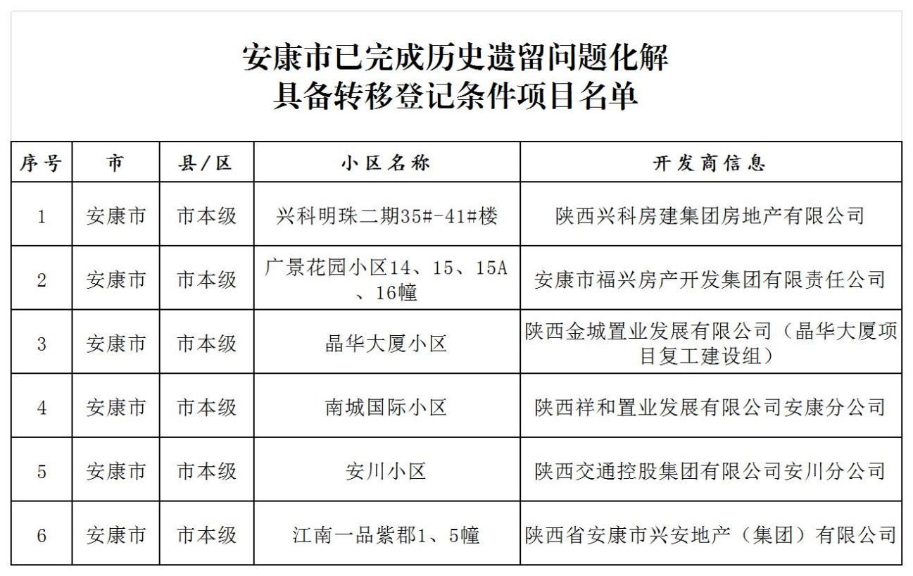 安康市市本級已完成住房領(lǐng)域不動(dòng)產(chǎn)“辦證難”問題化解具備轉(zhuǎn)移登記條件項(xiàng)目名單的公告