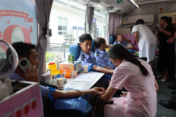 在獻血現(xiàn)場,民警輔警在工作人員的引導下有序進行獻血登記表的填寫、健康征詢、血液初篩、采血等流程。一次次挽袖,一袋袋熱血,傳遞出社會的正能量與濃濃的愛心。全局民警輔警積極響應(yīng)熱情參與,以實際行動踐行無私奉獻的精神,營造“獻血救人,助人利己”的良好社會氛圍。