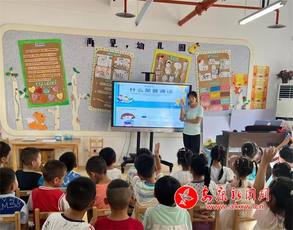 在第27屆全國推廣普通話宣傳周之際,旬陽市第一幼兒園圍繞“加大推普力度,筑牢強(qiáng)國語言基石”深入宣傳《國家通用語言文字法》,進(jìn)一步增強(qiáng)幼兒語言文字規(guī)范意識(shí)和推普參與意識(shí),營造敢說、想說、會(huì)說的語言環(huán)境,推進(jìn)幼兒園的普通話教育。(通訊員 王苗)?