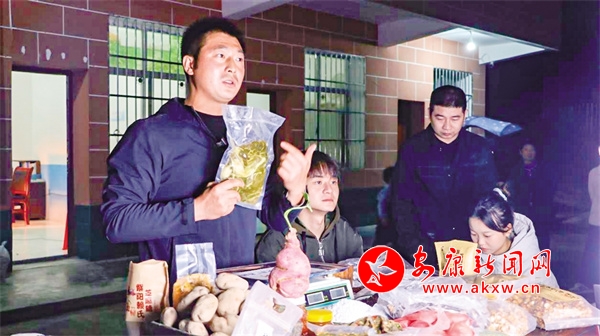 據(jù)了解,為了豐富產(chǎn)品種類,直播前夕吳勇就帶著駐村隊(duì)員以及村上干部,針對(duì)腿腳不便的老人進(jìn)行挨家挨戶收集登記,統(tǒng)一代賣,能到現(xiàn)場(chǎng)的群眾則自己帶著山貨到現(xiàn)場(chǎng)現(xiàn)稱現(xiàn)賣。根據(jù)當(dāng)天后臺(tái)數(shù)據(jù)分析,當(dāng)晚最高峰直播間人數(shù)達(dá)200多人,帶到現(xiàn)場(chǎng)的所有農(nóng)特產(chǎn)品一售而空,實(shí)現(xiàn)交易金額4319元,良好的開(kāi)端不僅讓吳勇直直呼沒(méi)想到,就連一直等到下播的群眾也感到不可思議。
