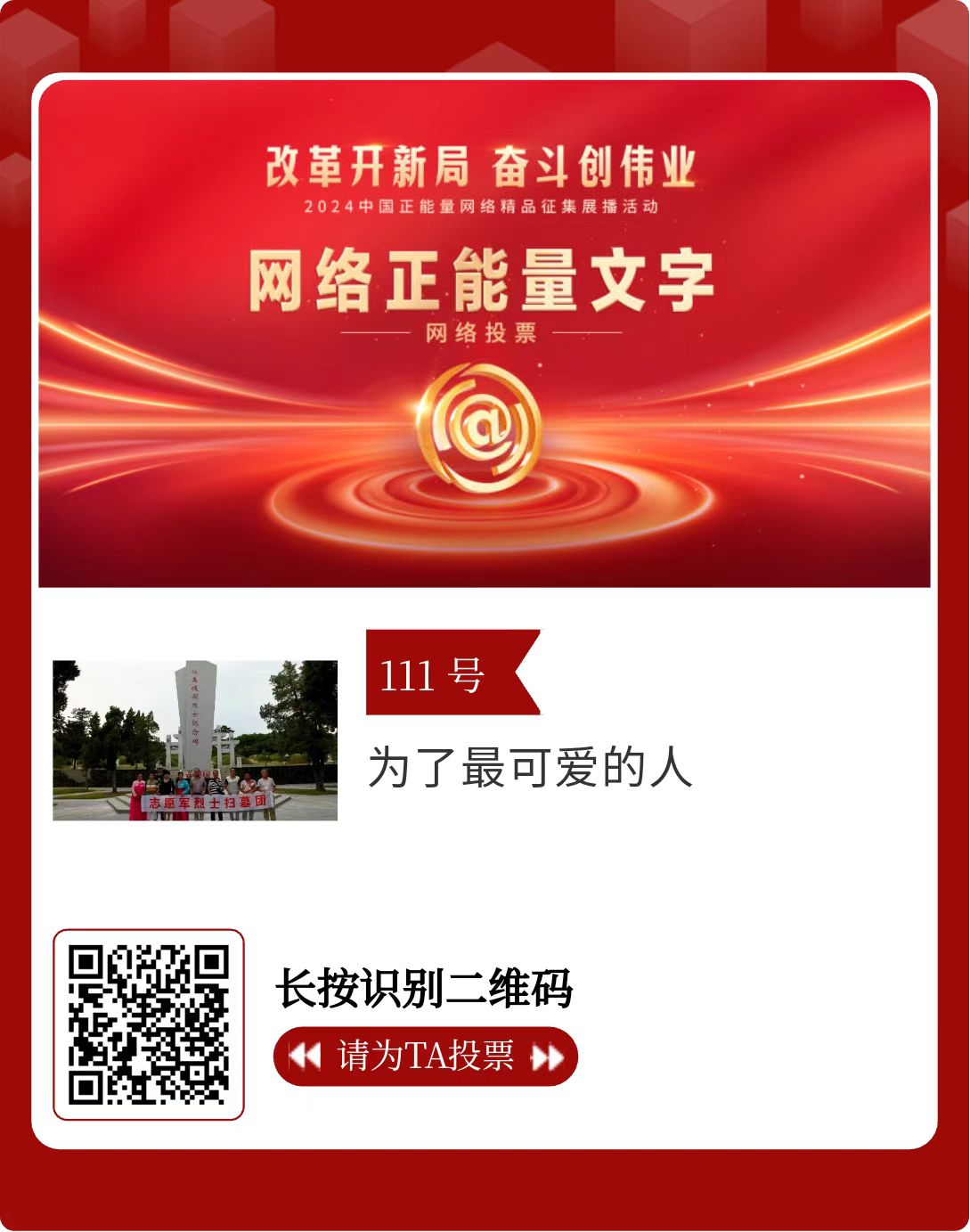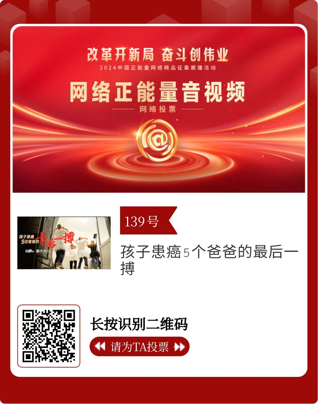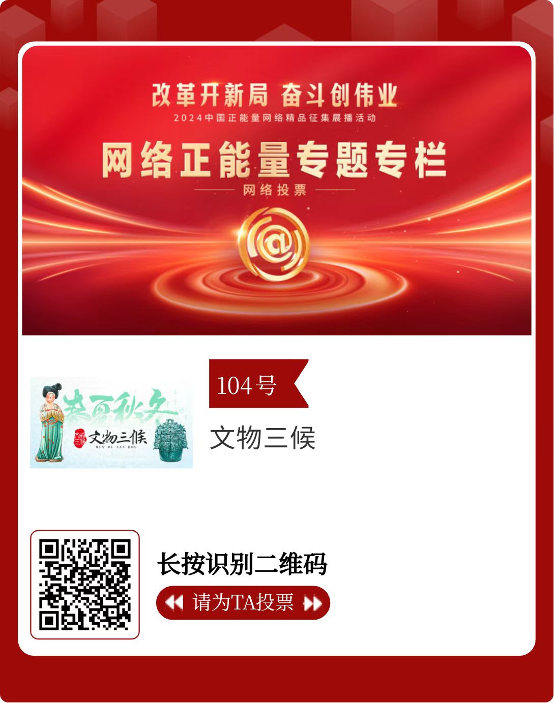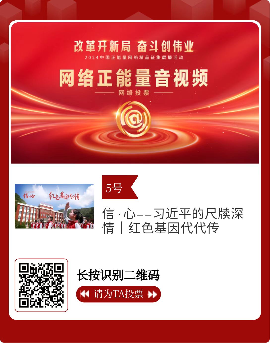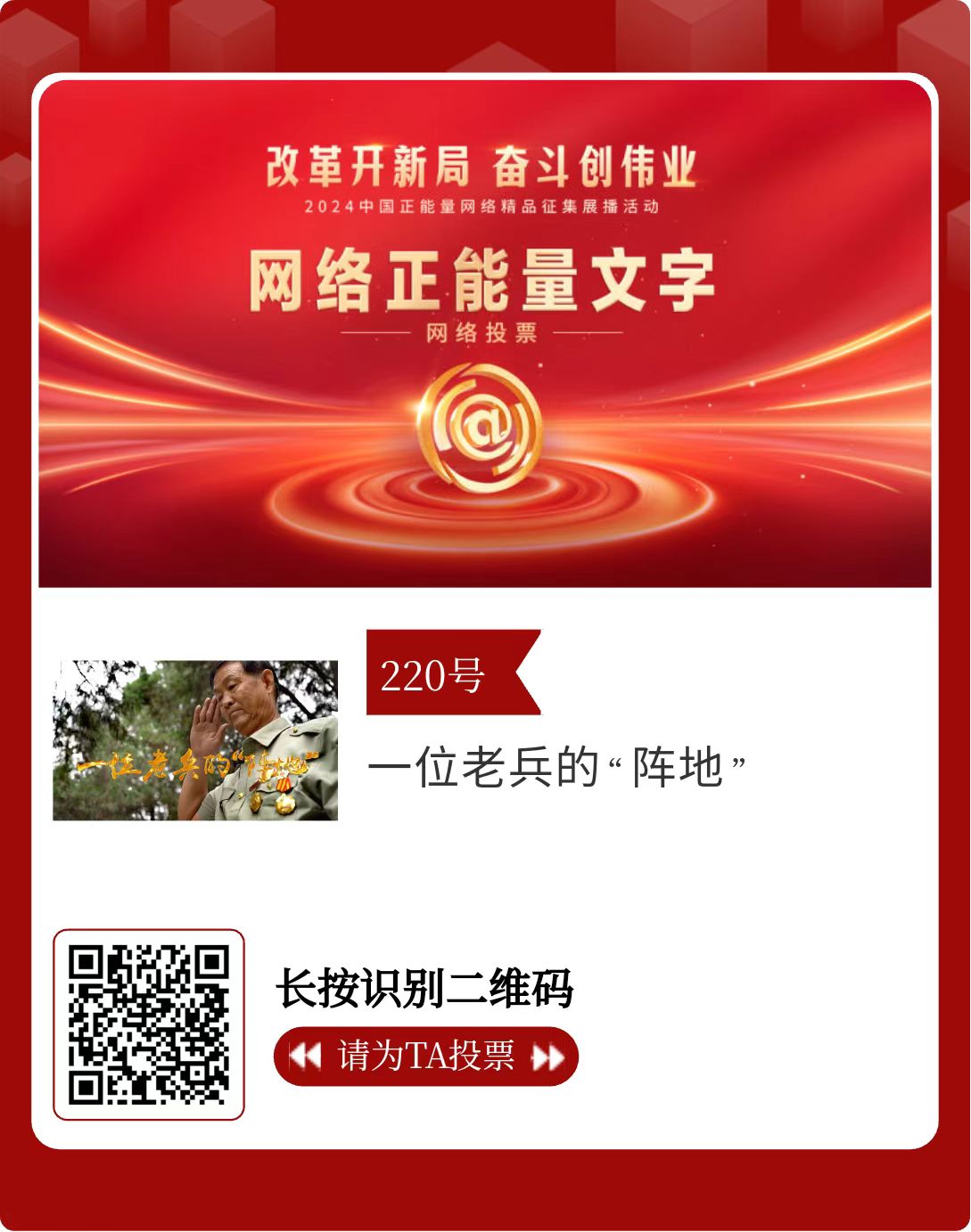 改革開新局,奮斗創(chuàng)偉業(yè)。由中央網信辦主辦的2024中國正能量網絡精品征集展播活動今天啟動網絡展播投票。