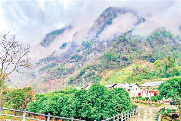 推開房門,晨霧尚未散盡,細(xì)雨斜斜地織著。老人們常說“有雨山戴帽,無雨半山腰”,這話在此時(shí)格外應(yīng)景——裊裊云霧沉甸甸地壓住遠(yuǎn)處的峰頂,像給每座山頭都戴了一頂灰絨帽子,讓群山失去了往日的險(xiǎn)峻,只留下青灰色的輪廓,恍若一幅優(yōu)美的寫意水墨畫。等到午后雨勢稍小,云霧退到半山腰,卻始終戀著大山不肯消散。隨著一陣陣微風(fēng)拂起,那些云霧像被吹落的玉帶,在墨綠的樹林間織出半透明的簾幕。