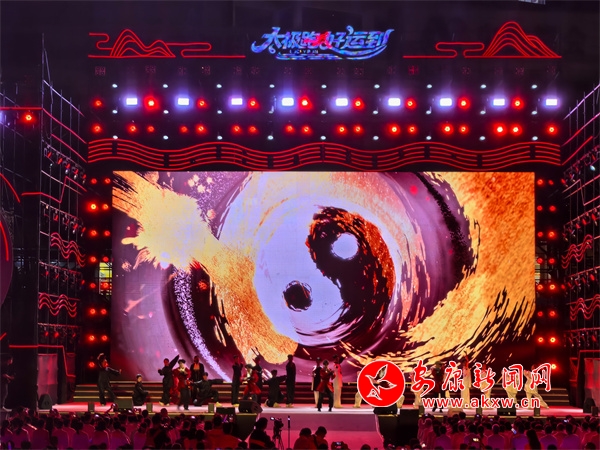 夜幕降臨,開(kāi)幕式現(xiàn)場(chǎng)美輪美奐、氣勢(shì)恢宏。燈光秀、歌舞秀拉開(kāi)活動(dòng)帷幕,博得雷鳴般的掌聲。21個(gè)鎮(zhèn)代表隊(duì)登臺(tái)亮相?!盁熁ㄐ恪辫矈Z目,化作多彩光芒,點(diǎn)亮太極城的夜空。伴隨著現(xiàn)場(chǎng)觀眾的激情吶喊,文藝節(jié)目相繼上演,歌伴舞《沖呀!去旬陽(yáng)》、旬陽(yáng)好物旬陽(yáng)非遺推介、舞蹈《舞動(dòng)長(zhǎng)樂(lè)紅》、民歌聯(lián)唱《姐不約郎郎不來(lái)》、千人復(fù)誦《太極·旬陽(yáng)賦》、太極秀《太極江湖》、千人齊跳《太極舞》等節(jié)目,充分展示了旬陽(yáng)的文化底蘊(yùn)、旅游資源、人文風(fēng)情,掌聲如潮、歡聲如雷。中國(guó)內(nèi)地歌手屠洪剛演唱的歌曲《你》《江山無(wú)限》《精忠報(bào)國(guó)》瞬間將現(xiàn)場(chǎng)氣氛燃爆。