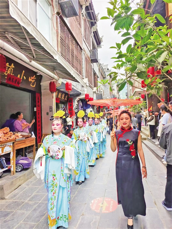 “過去總說‘捧著金飯碗要飯’,現(xiàn)在我們讓老手藝成了新飯碗。”古鎮(zhèn)“裕慶和”店面里,負責人李俊沏上一壺富硒茶,忍不住發(fā)出感嘆。這位扎根故鄉(xiāng)創(chuàng)業(yè)傳承非遺的“領(lǐng)頭雁”,將祖?zhèn)鞯陌舜蠹缦蛟斐闪裂勖K_發(fā)的“古鎮(zhèn)兩日游”線路,將美食體驗與民宿客棧、茶社書院有機結(jié)合,年接待游客上萬人次。