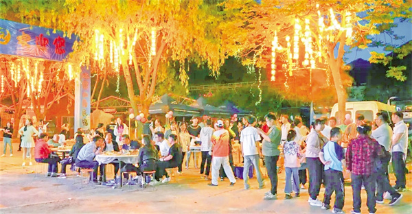 舞臺(tái)旁的燒烤美食區(qū),秘制烤肉與本地山珍食材散發(fā)著誘人香氣,游客們圍坐一起,吃著燒烤、聽著音樂、吹著涼風(fēng),盡情享受假日的愜意。演出間隙的套圈、有獎(jiǎng)問答、音樂接龍、民宿推介等互動(dòng)環(huán)節(jié),更是讓游客熱情高漲,現(xiàn)場(chǎng)歡聲笑語不斷。