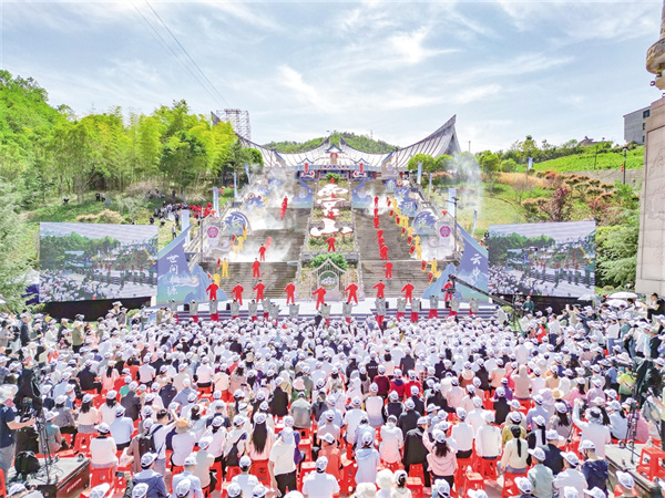 暮春的南宮山,蒼翠浸染。在悠揚(yáng)的《神奇美麗南宮山》旋律中,活動(dòng)正式啟幕,《序章·天門啟道》《天玄·問道山河》《地杰·武韻巴人》《和鳴·萬象共生》四大篇章層層遞進(jìn)。伴隨著激昂的音樂,國(guó)樂表演《刀劍如夢(mèng)》、竹海劍影《笑傲江湖》、巴人武韻《虎鈕錞于》、武術(shù)《天地人和》、舞+武《舞武對(duì)弈》等節(jié)目依次出場(chǎng),活動(dòng)現(xiàn)場(chǎng)鼓點(diǎn)如雷,舞者們騰空而起,剛猛的武術(shù)招式與充滿力量感的戰(zhàn)舞動(dòng)作交織,每一次騰躍,都將現(xiàn)場(chǎng)觀眾的熱血與激情點(diǎn)燃。