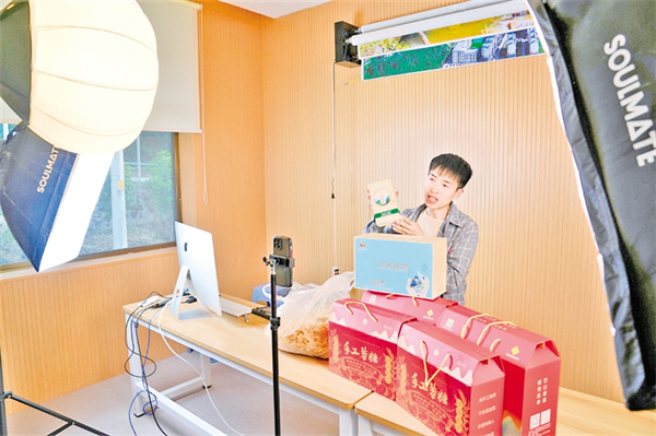 站在石門鎮(zhèn)電商直播基地內(nèi),燈光將王幫樂(lè)的影子拉得老長(zhǎng)。他正調(diào)試著新入手的直播設(shè)備,準(zhǔn)備把即將啟用的電商中心搬進(jìn)鏡頭。發(fā)貨的提示音在這時(shí)響起,恰似這個(gè)年輕“新農(nóng)人”正在書寫的電商助農(nóng)新篇章。
