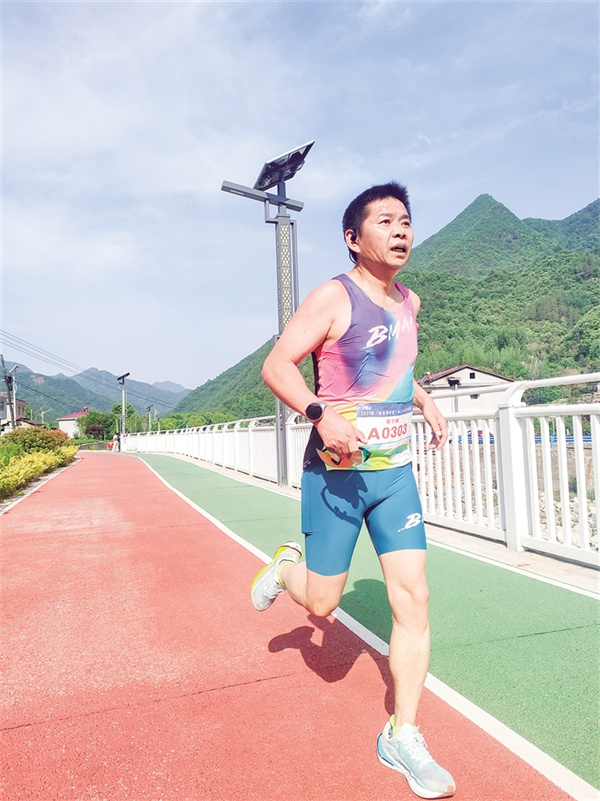 沿途的補(bǔ)給站早已經(jīng)準(zhǔn)備就緒,啦啦隊舉著“加油”的標(biāo)語牌揮舞,沿途的村民不分男女老少紛紛為選手鼓勁。比賽中,臨近退休卻堅持跑步10余年的“老將”肖軍鼓勵大家:“一定要穩(wěn)住節(jié)奏,后半程才不會掉速!”大顆大顆的汗水在他臉頰流淌,卻掩不住他眼中躍動的光芒。