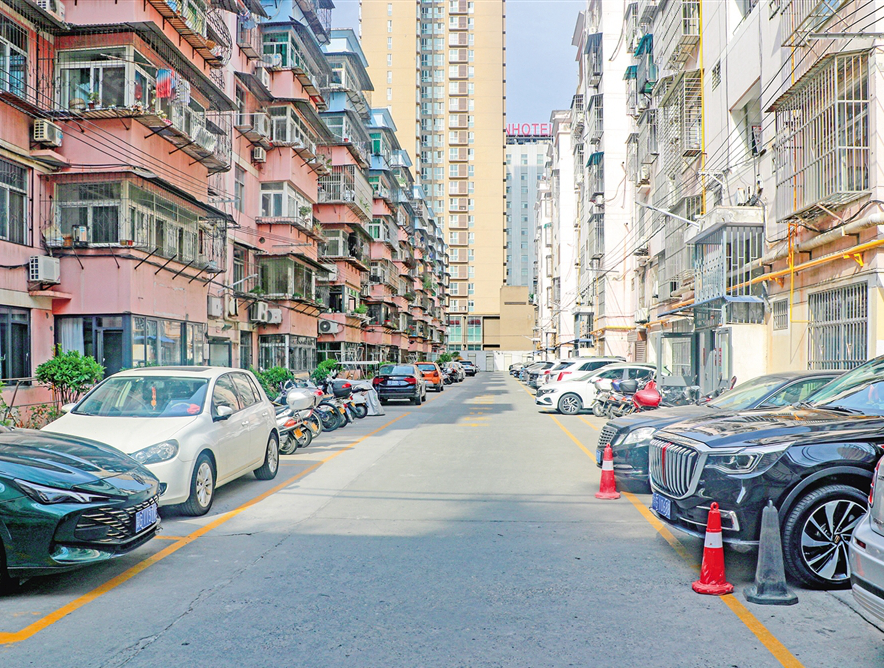 改造后的馨華園小區(qū)停車(chē)規(guī)范整齊。吳亞君 攝