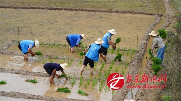 6月5日,走進城關鎮(zhèn)漁灣村麻莊組,一片熱火朝天的農忙景象映入眼簾。農技人員與農戶們并肩作戰(zhàn),共同進行水稻插秧作業(yè)。劃線分區(qū)、精準配肥、均勻撒肥、有序插秧……每一項工作都進行得有條不紊,大家分工明確、配合默契,田間地頭處處洋溢著忙碌而歡快的氣息。
