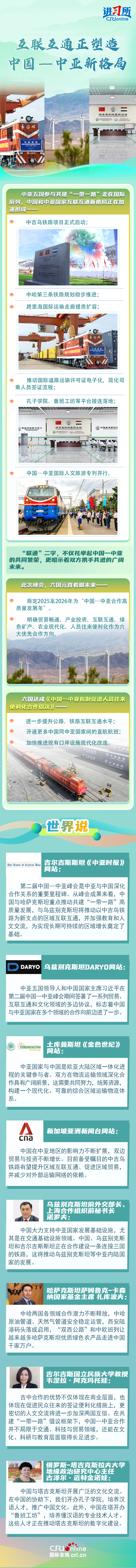 國際輿論及中亞各界人士認為,中國和中亞國家互聯(lián)互通新格局有利于中亞國家提升自主發(fā)展能力,特別是在共建“一帶一路”倡議框架下,中國—中亞合作在貿易、人文等多領域取得了長足進步,為區(qū)域實現(xiàn)長期可持續(xù)增長奠定了基礎。