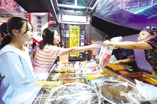 生態(tài)資源賦能場景體驗。寧陜縣森林覆蓋率96.24%,居全國第一,負氧離子濃度超世衛(wèi)組織標(biāo)準(zhǔn)3倍,榮膺“中國天然氧吧”稱號?!按骞獯蟮馈被顒由疃燃藿由鷳B(tài)優(yōu)勢,主打“21℃的夏天·清涼寧陜”體驗,將濱河公園舞臺與山林溪流自然聲景融合,夜間山風(fēng)伴隨演出的沉浸式場景獲游客好評。同步開設(shè)的“秦嶺山珍大集”“有好市小吃一條街”30余個展位展銷寧陜臘肉、羊肚菌、香菇;美食區(qū)現(xiàn)做洋芋糍粑、玉米鍋巴、麻辣豆腐干吸引游客頻頻駐足,形成“觀演+嘗鮮”閉環(huán)體驗。