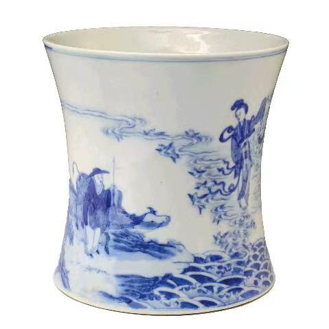 山東博物館收藏的清光緒青花七夕卷筒,也描繪了牛郎織女在天河上即將相會(huì)的情景。卷筒圖案中,祥云繚繞、喜鵲飛舞,鵲橋很快就會(huì)搭成。一年未見,牛郎拱手準(zhǔn)備,對(duì)即將到來的見面迫不及待;織女衣袂飄飄,含情脈脈地望著日夜思念的牛郎。畫中人物清麗灑脫、典雅高貴,器物主題鮮明、藝術(shù)性較高,真可謂秦觀筆下“金風(fēng)玉露一相逢,便勝卻人間無數(shù)”的生動(dòng)注解。