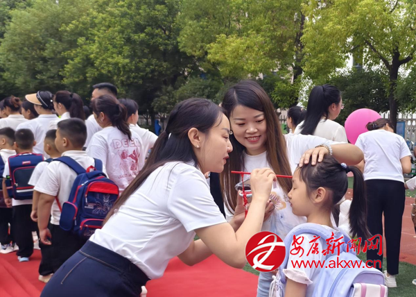 在傳統(tǒng)文化環(huán)節(jié)“朱砂啟智”時,校領(lǐng)導(dǎo)以朱砂點痣,傳古代“開筆禮”智慧;新生向孔子像行拜師禮,稚嫩鞠躬種下尊師種子;“擊鼓明智”環(huán)節(jié),新生逐個敲鼓,三聲鼓響承載“一鳴驚人”“學(xué)業(yè)有成”“志向遠大”期許。儀式后,班主任帶新生入班,開啟校園新生活。?