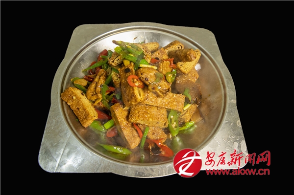 2011年,王鵬以糧食巷自己的住房為經(jīng)營場所注冊了寧陜縣菜根香私房菜菜館。同年,他又注冊成立了菜根香餐飲文化有限公司,致力于推廣地方餐飲文化。這里也是王鵬做高端菜品創(chuàng)作的起點。以土雞、山藥、蕓豆為主料的“瓦罐雞”經(jīng)過小火慢燉,雞肉軟嫩,湯清味鮮?!案慑伇ざ垢笔嵌垢すu蛋液在高溫下油炸后配以臘肉炒制調(diào)味后放入干鍋中,豆腐皮外形就有了豹紋,匠心制作的菜品咸香、豆香、復合香,自是山珍中難得的美味。10多年過去,這道菜仍然是大眾點評中的熱選菜品。