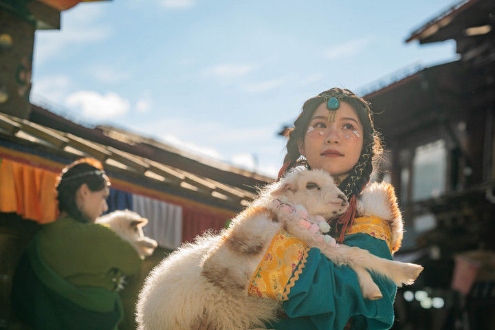 ? ? ? ? ? ? ? ? ? ? ? ? ? ? ? ? 2023年3月8日,游客在迪慶州香格里拉市獨克宗古城拍照留念。