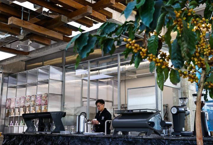 2025年12月10日,旅居云南的韓君瑋在位于昆明的南來盛咖啡店內制作咖啡。韓君瑋自清華大學畢業(yè)后,已在咖啡行業(yè)耕耘十余年。2024年,他受聘成為云南一家老字號咖啡品牌的品牌總顧問,從此投身到云南咖啡的產品研發(fā)和品牌推廣工作中。一年多來,他每月都會來到昆明,短則幾天,長則數周,開啟了一種“半旅居、半工作”的生活模式。“云南風景優(yōu)美、氣候宜人,我很享受這樣的狀態(tài)?!表n君瑋說。