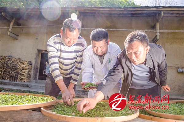 “十四五”期間,我市持續(xù)推進(jìn)茶產(chǎn)業(yè)發(fā)展,努力實(shí)現(xiàn)茶產(chǎn)業(yè)“四時(shí)有收”。圖為紫陽(yáng)白茶非遺制作技藝代表性傳承人在高橋鎮(zhèn)裴壩村,向茶農(nóng)推廣紫陽(yáng)白茶非遺制作技藝。 李勝璋 攝?