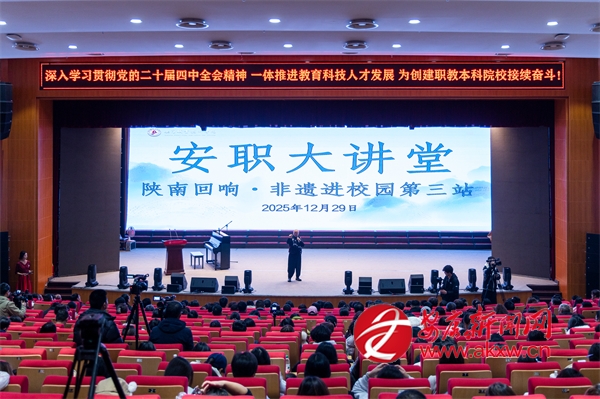 這是“安職大講堂”首期活動現(xiàn)場。一場以“陜南回響”為主題的音樂課,正在這所地方高職院校里,探索職業(yè)教育與文化傳承的深度交融。