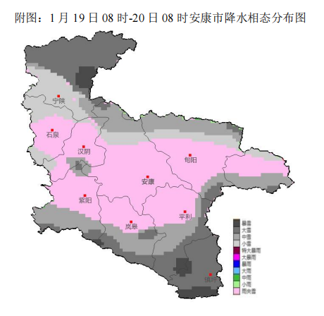 根據(jù)最新氣象觀測資料和數(shù)值模式分析,經省市會商研判,預計今天夜間至21日我市有雨雪寒潮天氣,強雨雪時段為19日白天,巴山沿線部分地方有凍雨,川道河谷地區(qū)以小雨或雨夾雪為主,中高山地區(qū)雨夾雪轉小到中雪,秦巴山區(qū)及東部高山局地大到暴雪,20及21日白天全市大部仍有間歇性弱雨雪天氣。過程累計降水量:全市大部5~8毫米,東部局地超過12毫米,高山地區(qū)新增積雪深度可達3~12厘米。今天夜間至22日氣溫持續(xù)走低,過程全市大部平均氣溫下降8~10℃。22日雨雪天氣結束,受前期雨雪天氣和冷空氣持續(xù)影響,氣溫仍較低,預計最低氣溫將出現(xiàn)在22日或23日清晨,川道地區(qū)-5~-2℃,中高山地區(qū)-10~-6℃,局地低于-12℃。過程期間全市大部平均風力3~4級,山區(qū)局地有6級或以上陣風。