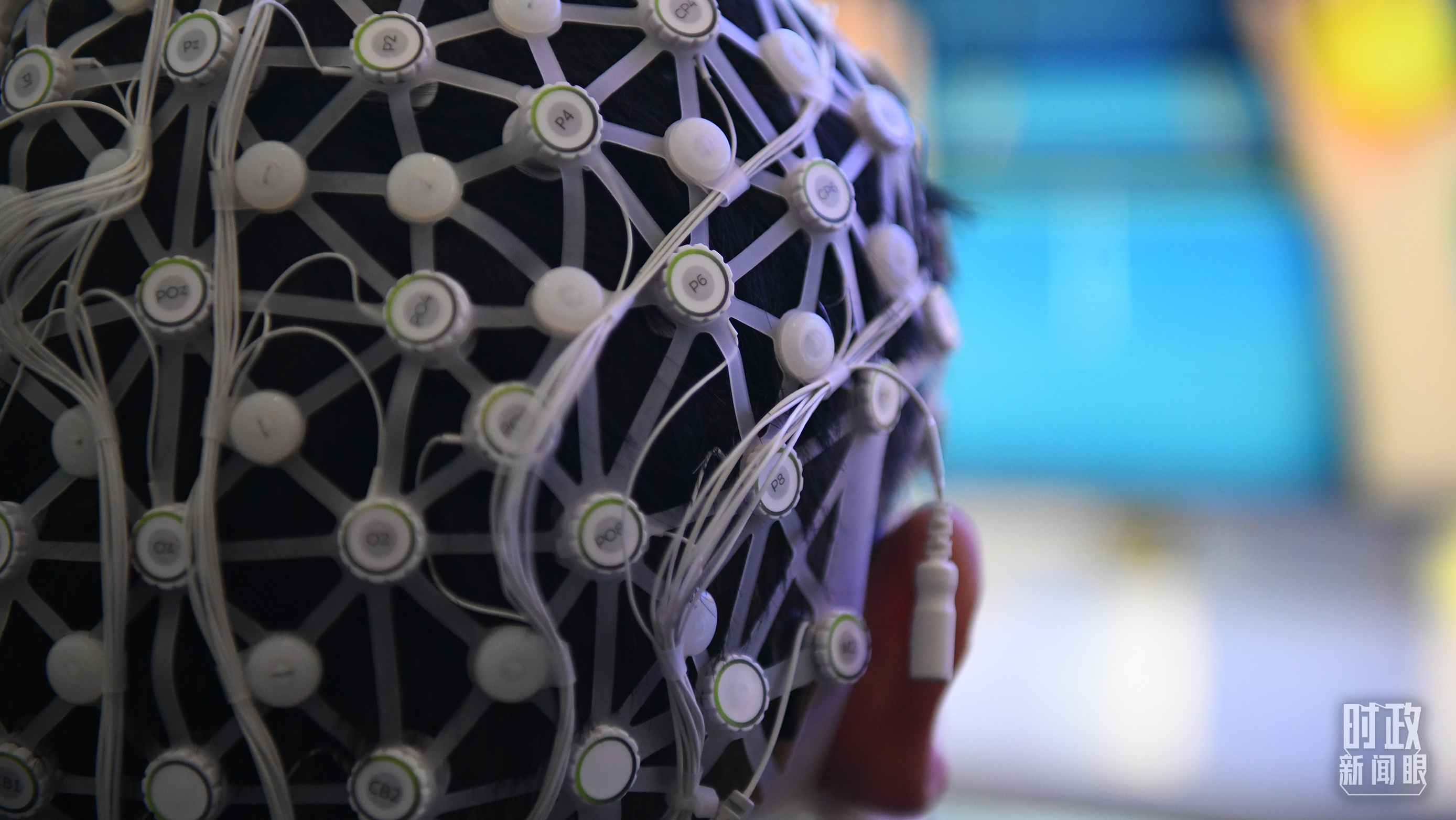 △2026年1月24日,安徽省腦機接口創(chuàng)新發(fā)展大會現場一位穿戴腦機接口設備的體驗者。(圖/視覺中國)