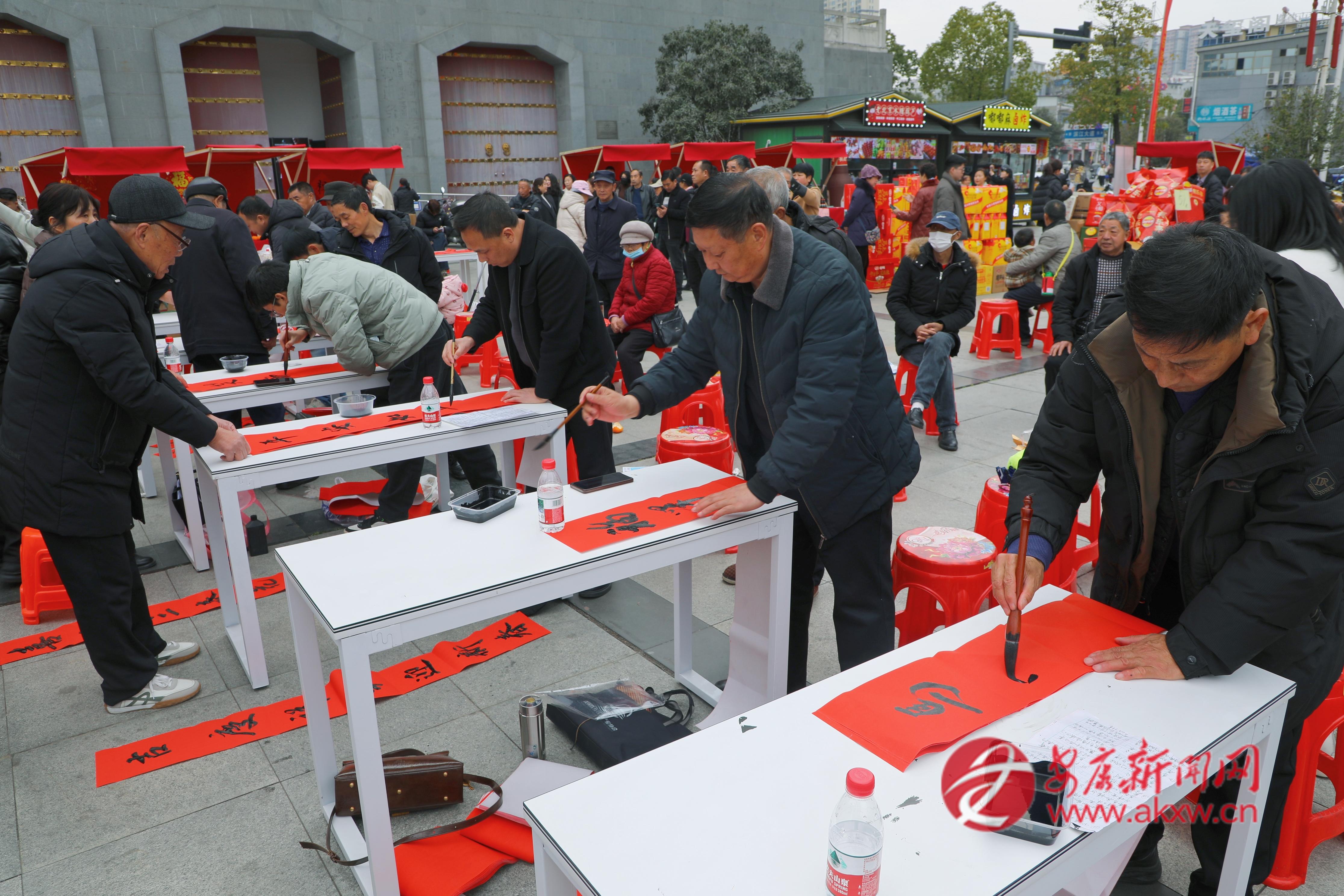 活動開場,鏗鏘的舞獅表演點燃全場熱情,漢調二黃盡顯秦巴韻味,嘹亮的歌唱與精妙的川劇變臉輪番上演,獨具特色的文藝演出贏得市民群眾陣陣掌聲,其間的抽獎活動與趣味娛樂環(huán)節(jié),吸引市民沉浸式參與其中,更是將節(jié)日的歡樂氛圍推向高潮。另一邊,市文化產業(yè)協(xié)會的書法家們揮毫潑墨,一副副喜慶的大紅春聯(lián)、一張張吉祥的福字帶著墨香送到群眾手中。