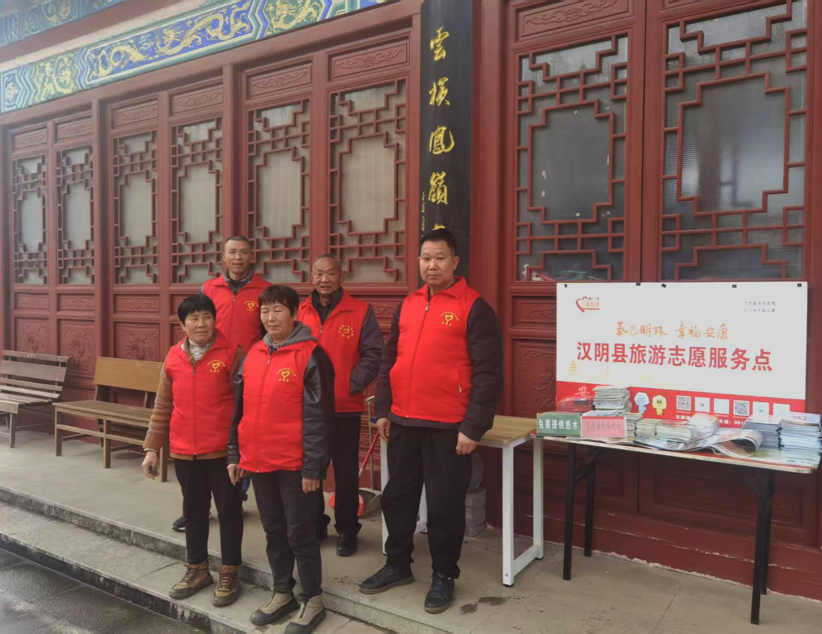 春節(jié)期間,志愿者在漢陰縣龍崗公園堅(jiān)守崗位。他們放棄與家人團(tuán)聚的時光,用行動詮釋奉獻(xiàn)與擔(dān)當(dāng),守護(hù)游客的平安與歡樂。王磊 攝