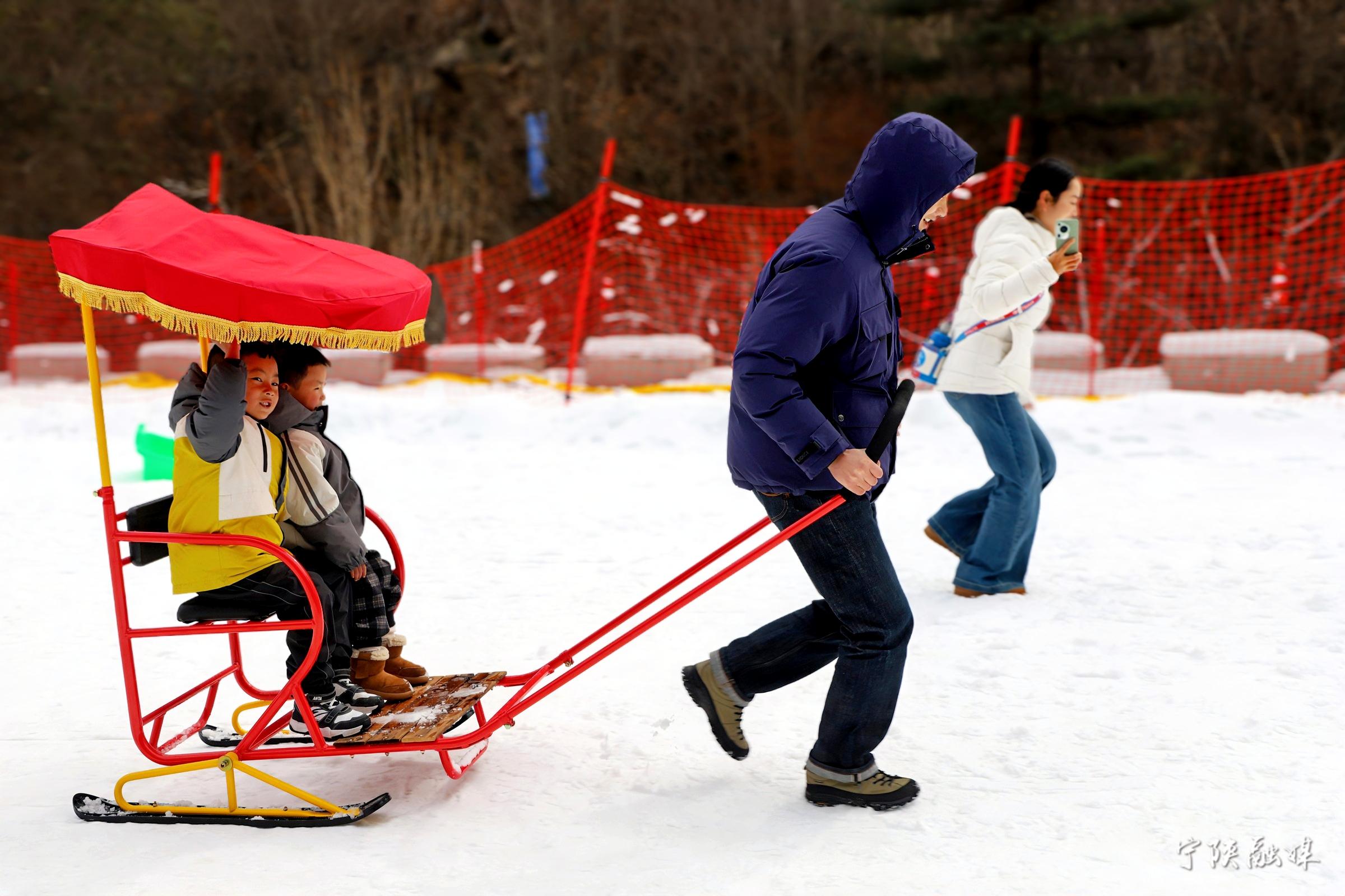 2月18日,游人在寧陜縣皇冠雪鄉(xiāng)體驗(yàn)冰雪娛樂項(xiàng)目。當(dāng)日皇冠雪鄉(xiāng)接待游客1813人次。黃太萱 攝