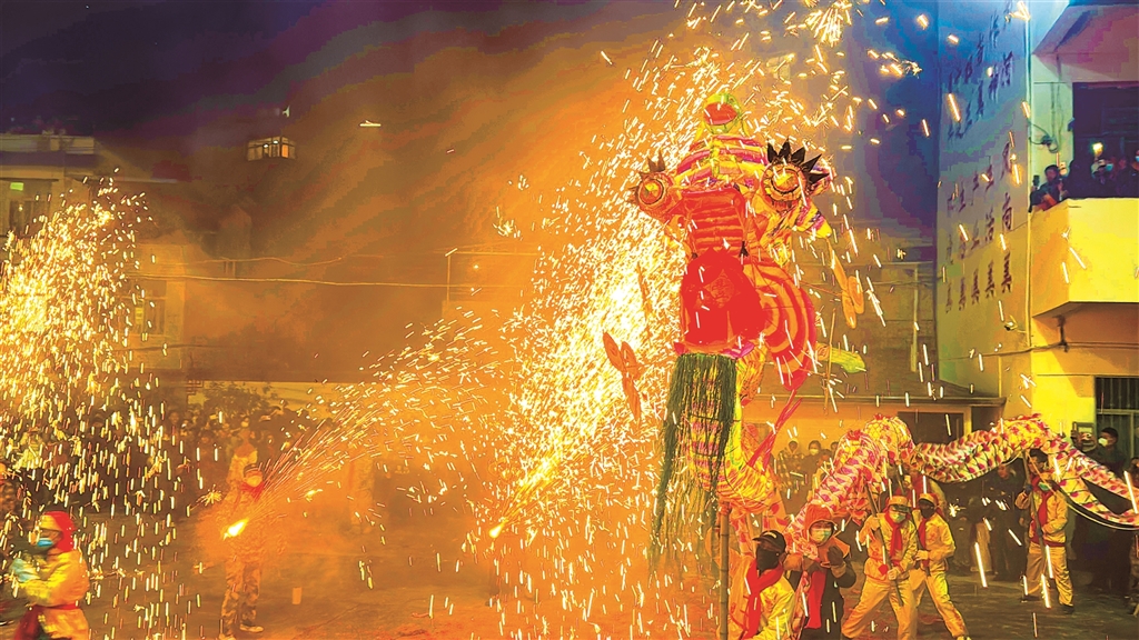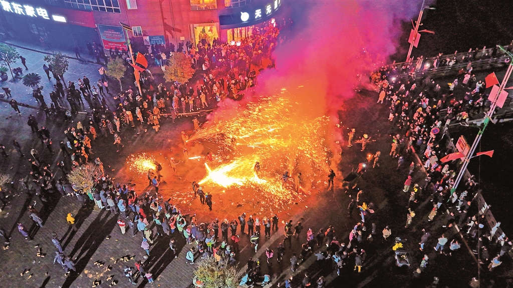 圖一:3月1日,旬陽市蜀河古鎮(zhèn)舉行“火獅子”民俗活動(dòng)。烏蒙 羅瑞琦 攝