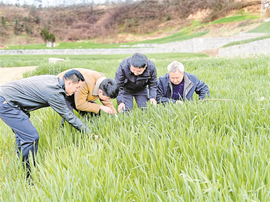 “這塊墑情不錯(cuò),但那邊靠坡的地有點(diǎn)干,施肥得區(qū)別對(duì)待?!?月24日,漢濱區(qū)農(nóng)業(yè)農(nóng)村局聯(lián)合相關(guān)部門組建技術(shù)服務(wù)隊(duì),分赴各糧食生產(chǎn)重點(diǎn)鎮(zhèn)。汪德義帶著隊(duì)員們逐塊田排查,建立管理臺(tái)賬,針對(duì)不同苗情、墑情精準(zhǔn)開具“個(gè)性化處方”。農(nóng)戶圍在他身邊,聽得認(rèn)真,問得仔細(xì)。
